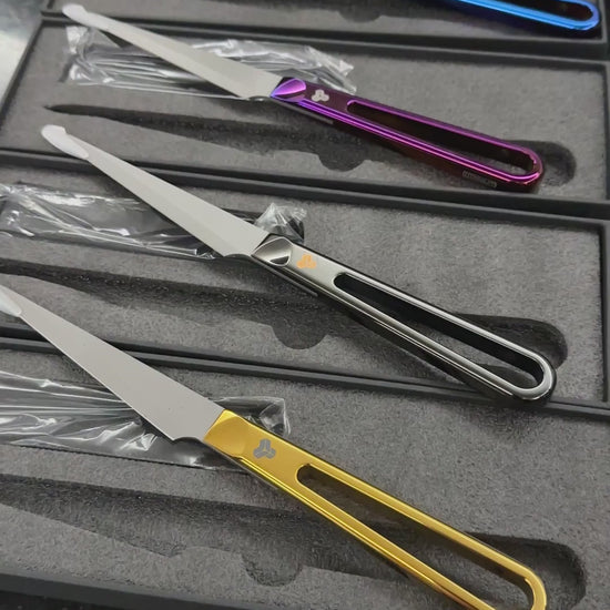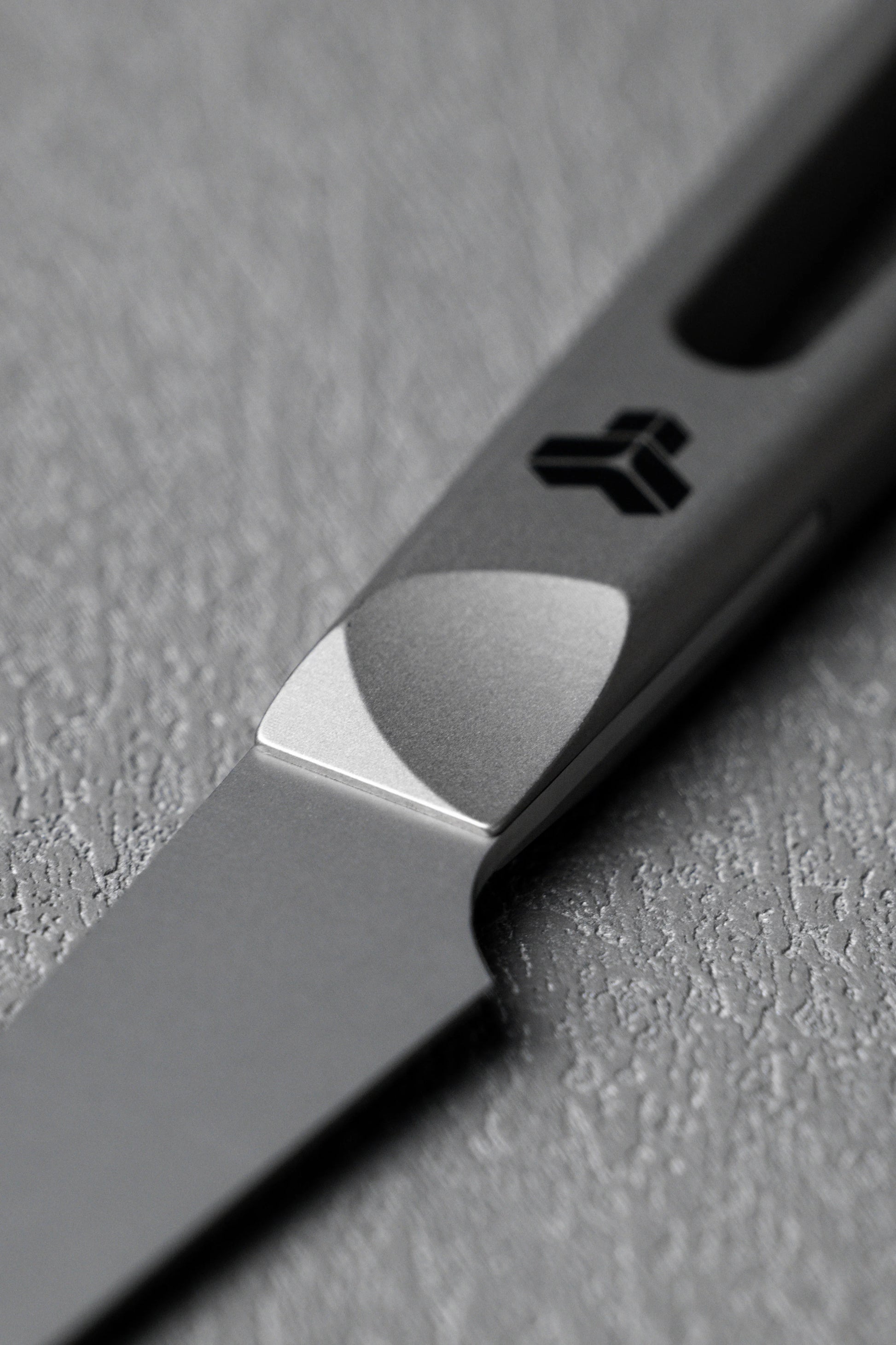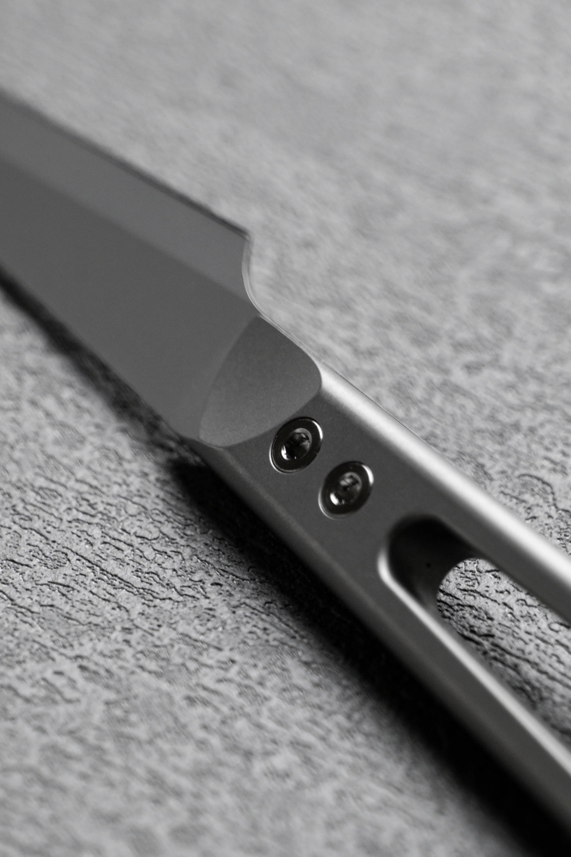 We have explored the possibility of creating a full titanium blade using various alloys. However, after extensive testing, we concluded that existing titanium alloys are not ideal for functional blades, such as kitchen paring knives. The edge retention of titanium blades does not meet our standards, and over time, this would lead to performance issues. Despite these challenges, we remain committed to pursuing advancements that may one day enable us to achieve a fully titanium functional knife.