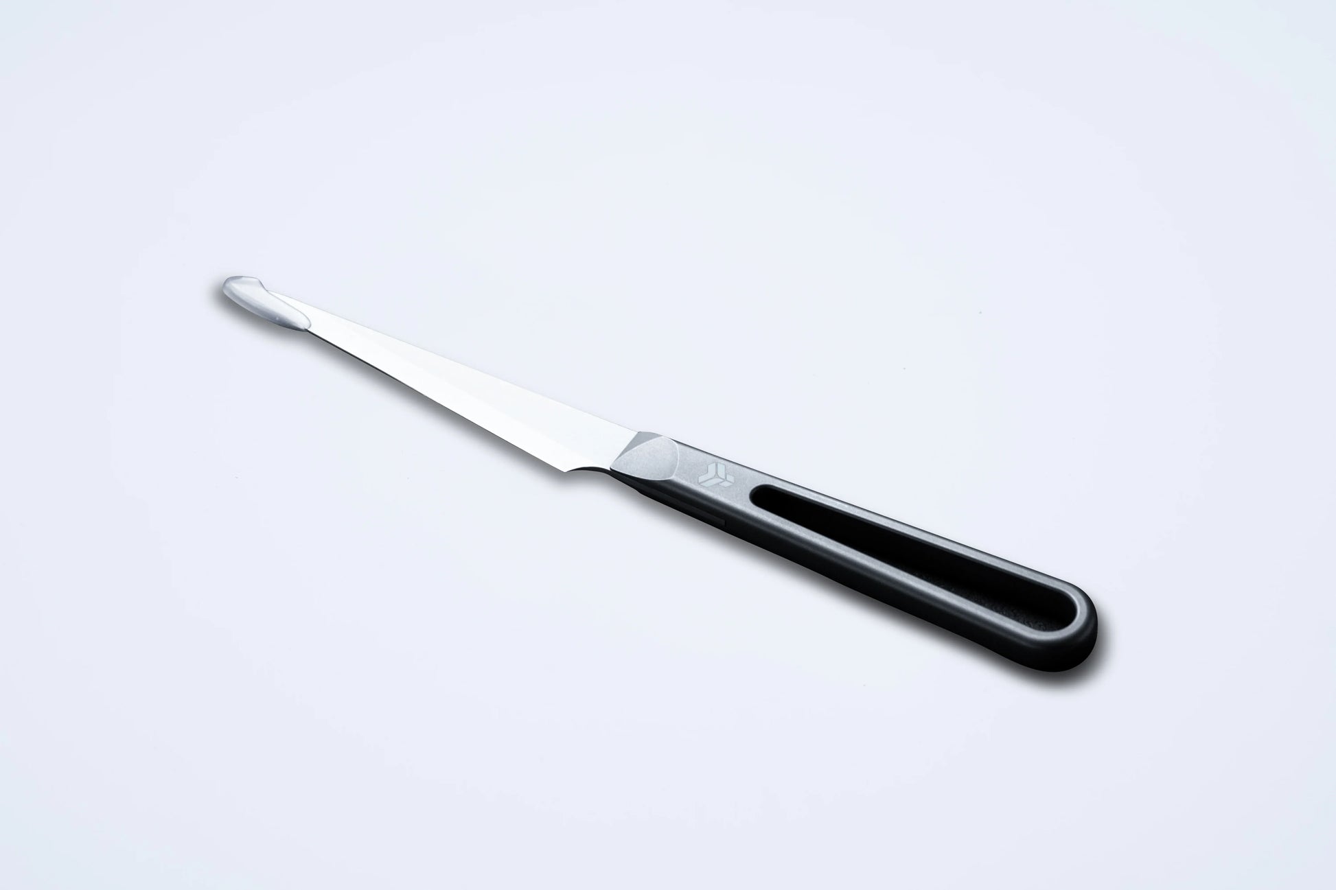 Nous avons étudié la possibilité de créer une lame entièrement en titane à partir de différents alliages. Cependant, après des tests approfondis, nous avons conclu que les alliages de titane existants ne sont pas adaptés à la fabrication de lames fonctionnelles, telles que les couteaux d'office. La tenue de coupe des lames en titane ne répond pas à nos normes et, à long terme, cela entraînerait des problèmes de performance. Malgré ces difficultés, nous restons déterminés à poursuivre nos efforts afin de pouvoir un jour fabriquer un couteau fonctionnel entièrement en titane.