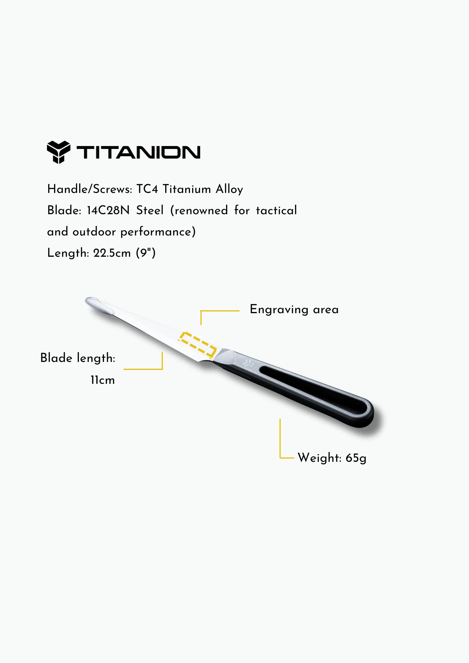- Handle: TC4 Titanium Alloy (Grade 5 Titanium)
